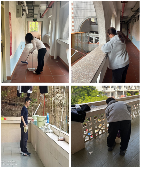 活动中,宿舍楼栋清理工作有条不紊地进行着。宿舍走廊是清理的重点区域之一,平日里这里可能会堆积一些灰尘、杂物和丢弃的小物品。同学们手持扫帚、拖把,认真清扫着地面的垃圾,擦拭着楼梯扶手,清除楼梯台阶上的污垢,不放过任何一个角落。经过一个下午的打扫后,宿舍楼变得焕然一新、井井有条。