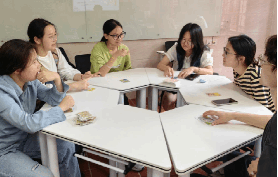在姚老师的带领下,同学们分成小组,围坐在一起,开始了OH卡牌的互动体验。通过卡牌的抽取、展示与分享,同学们逐渐打开了心扉,分享了自己在卡牌中感受到的情绪与故事。这些分享不仅加深了同学们对自己的认识,也让他们学会了如何更加敏锐地觉察他人的情绪与需求。