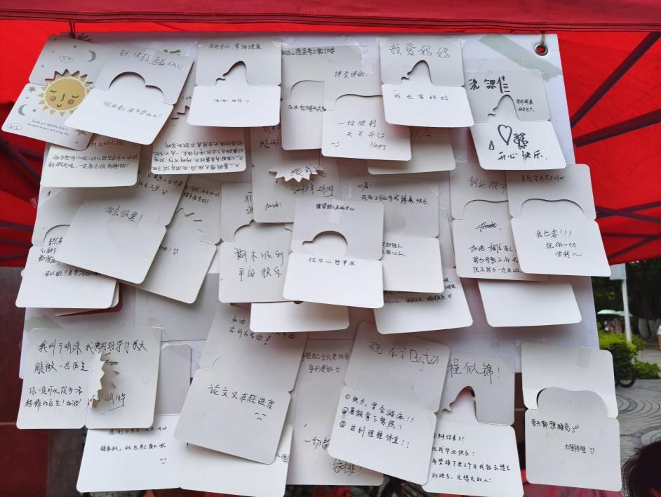 “树洞”前总是排着长队,同学们认真地在贺卡上写下自己的心事、愿望或烦恼。有人写下对未来的期许,有人倾诉成长的困惑,还有人分享生活中的小确幸。更令人感动的是,许多同学不仅留下了自己的心声,还主动回应了他人的卡片。“加油!你并不孤单”、“相信明天会更好”……这些温暖的回复被整齐地粘贴在展示板上,成为校园里一道独特的风景线。