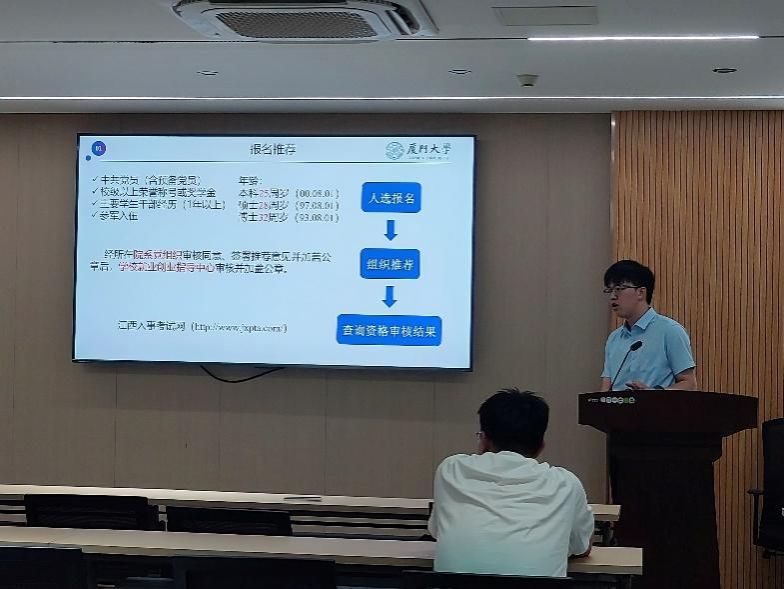 谢华斌系统介绍了江西选调生选拔与培养全流程。在笔试、面试的备考过程中,他建议笔试可以多手准备,同步复习其他地区考试内容,保持积累,通过学习强国等渠道去积累大量的时事热点、政策以及常识,并针对不同地区的考试侧重点去准备一些特定的内容。面试较为紧凑,12分钟答3题,且涉及多种题型,他建议面试备考多积累素材、总结框架、多开口练习,考场上要穿着得体,答题流畅,自信不露怯。