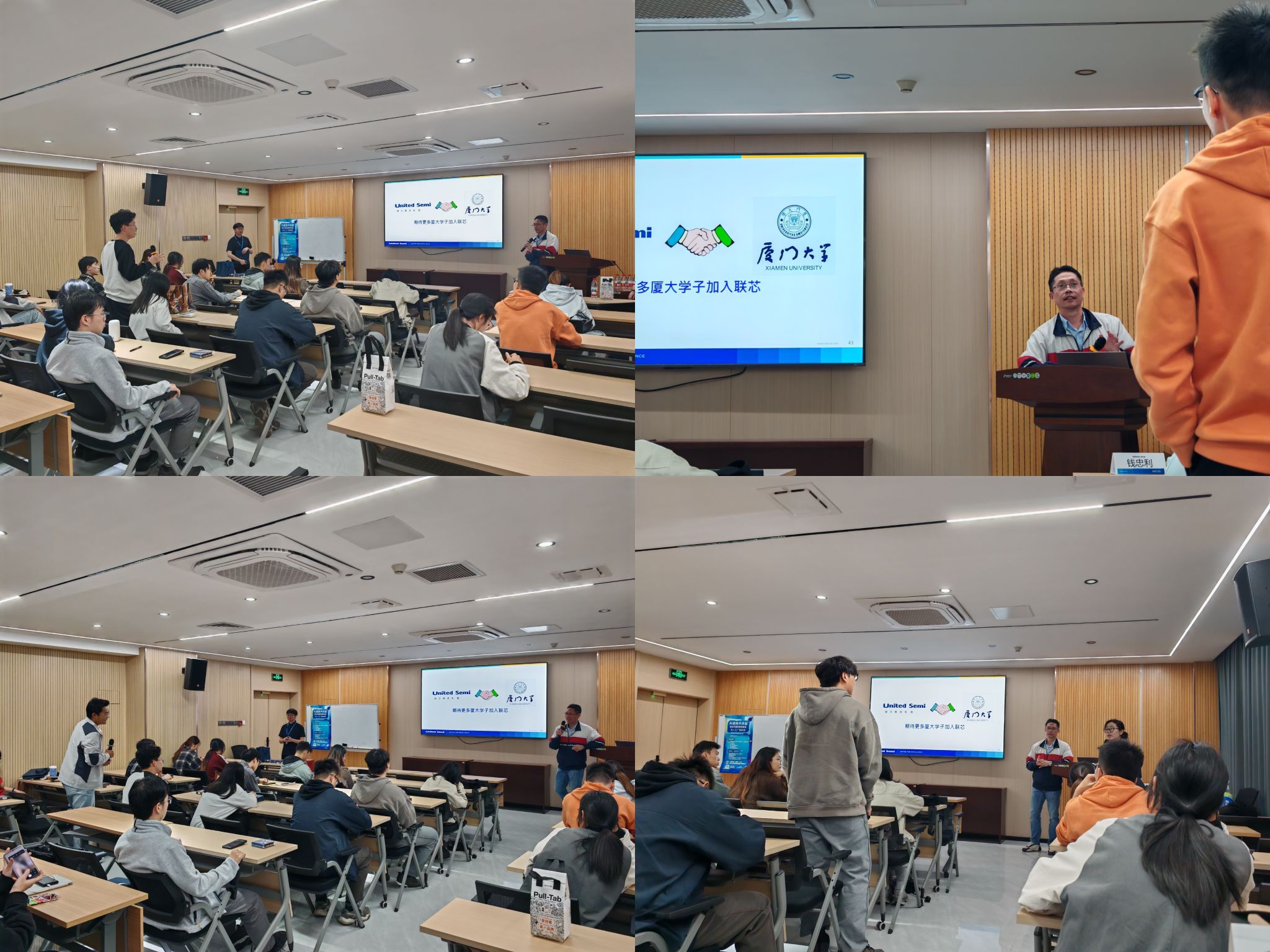 最后的互动交流环节,同学们积极提问,大家对无人工厂的全规模自动化路径规划、半导体行业新人入行如何自主解决问题、企业招聘最看重的能力特质等话题与钱副总监展开了深入讨论,钱副总监结合自身经历为大家做出耐心解答,现场气氛十分热烈。