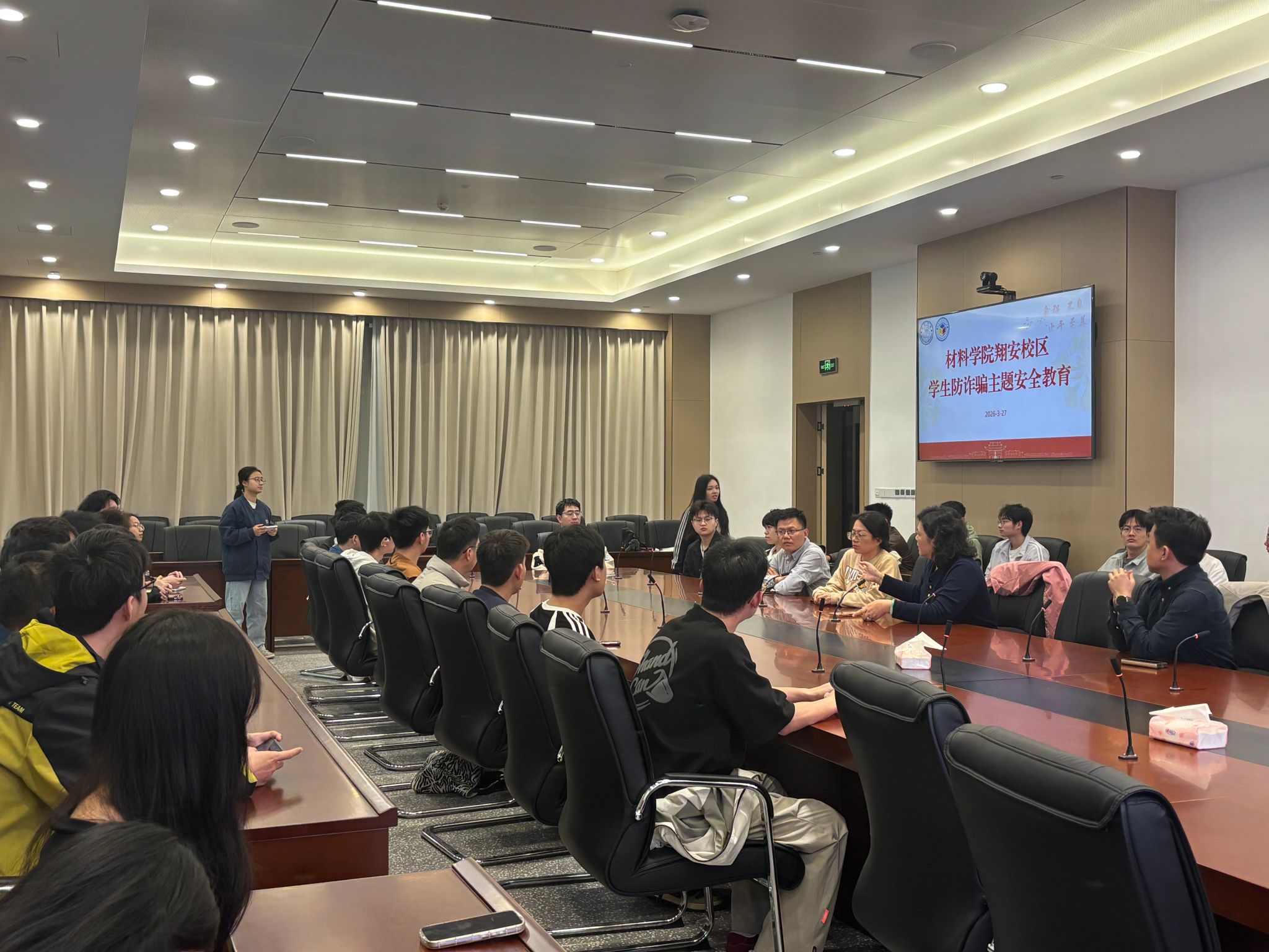 为切实筑牢校园安全防线,全面提升学生防诈骗意识和实验安全防护能力,3月27日上午,材料学院在嘉庚实验室三号楼5号会议室召开校区学生防诈骗主题安全教育会暨实验人员安全培训会。学院党委副书记黄兆君、副院长李思维、实验安全中心高级工程师周花、教学秘书郭艳、辅导员杨凯旭、蔡胜男出席会议,翔安校区全体学生参加会议。