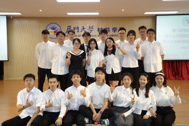 2023年7月20日上午,厦门大学材料学院第十七次研究生代表大会、第十七次研究生团员代表大会在材料学院圣诺楼201报告厅召开。材料学院党委副书记黄兆君,团委副书记蔡胜男,校就业创业指导中心副科长丁渡,校研究生会主席团成员,各兄弟学院研究生会主席团成员代表以及来自全院研究生各班级的团员代表出席本次大会。大会由材料学院第十六届研究生会主席团成员吴俐臻主持。