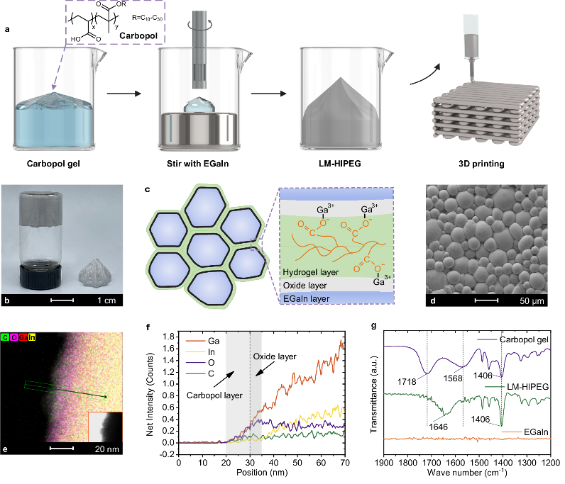 图1:液态金属高内相乳液凝胶墨水的制备流程及形成原理