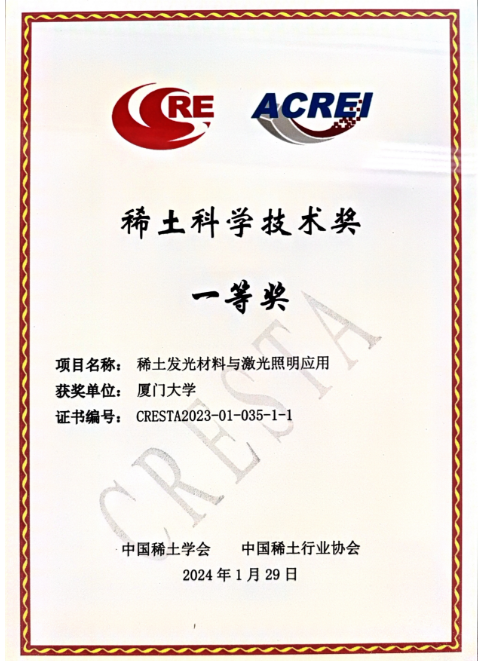 10月26日-27日,“中国稀土学会2024学术年会”在四川省成都市举办。中国科学院、中国工程院的十位院士和百余位长江学者、国家杰青等知名学者与来自全国各地的科研院所、大专院校、企事业单位、学会、协会的众多稀土行业的专家、学者、企业家共计2000余人参加了此次会议。会议颁发了2023年度稀土科学技术奖项,材料学院解荣军教授课题组完成的“稀土发光材料与激光照明应用”成果获得了稀土科学技术奖一等奖, 获奖人是解荣军教授和李淑星副教授。