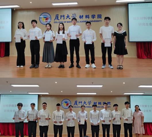 随后,材料学院团委副书记蔡胜男为第十六届研究生会、团总支成员颁发任职证明。材料学院党委副书记黄兆君为第十六届团总支、研究生会优秀干事颁发证书,最后领导嘉宾合影留念。