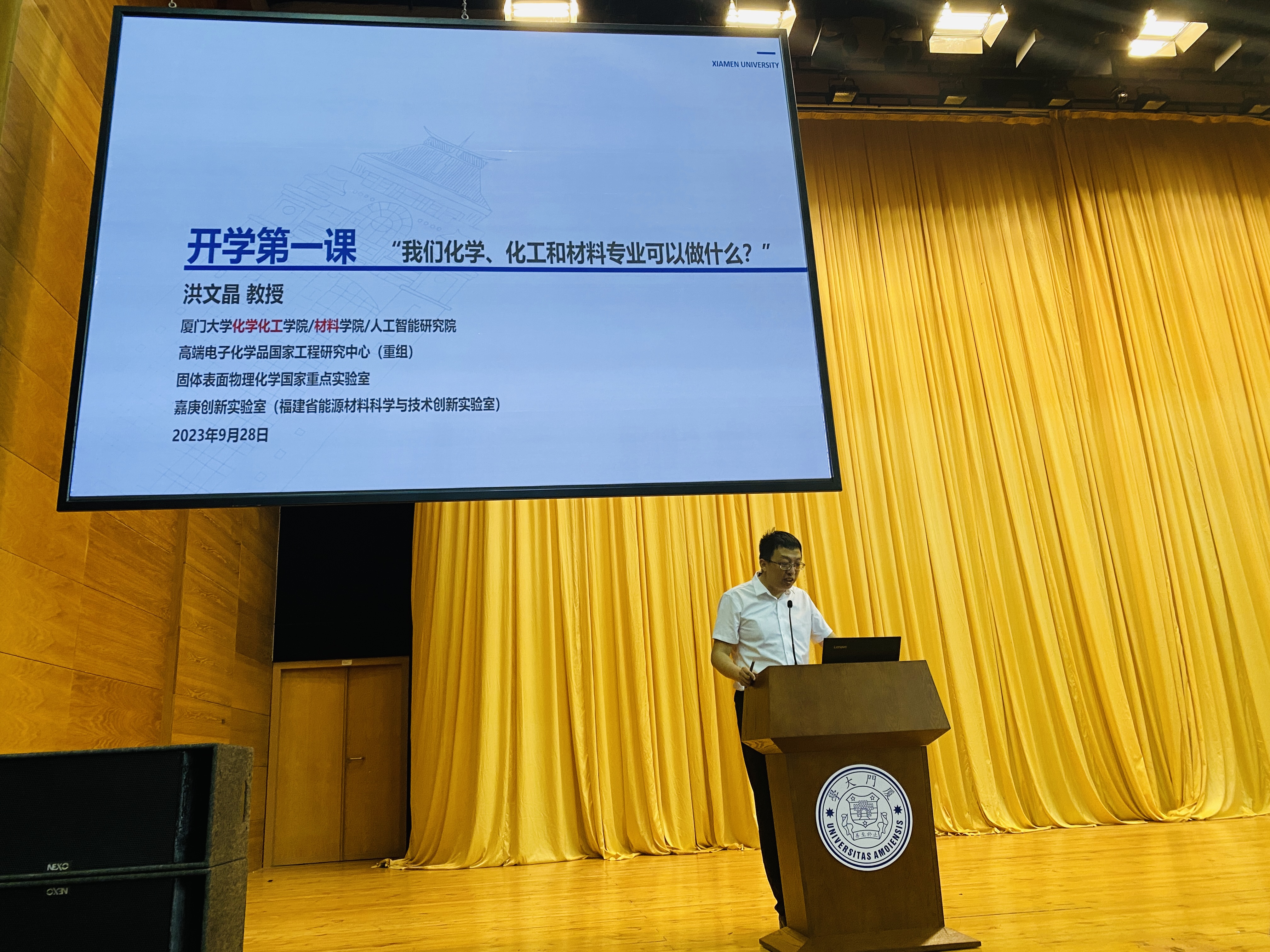 9月28日上午,在科艺中心三楼报告厅,洪文晶教授以《科技强国,有你有我》为主题为同学们上了开学第一课。他从芯片研发谈起,结合自身的学习工作经历,勉励同学们认真学习,传承厦大人积淀的精神传统,开始新学期新征程,绘就奋斗的青春。