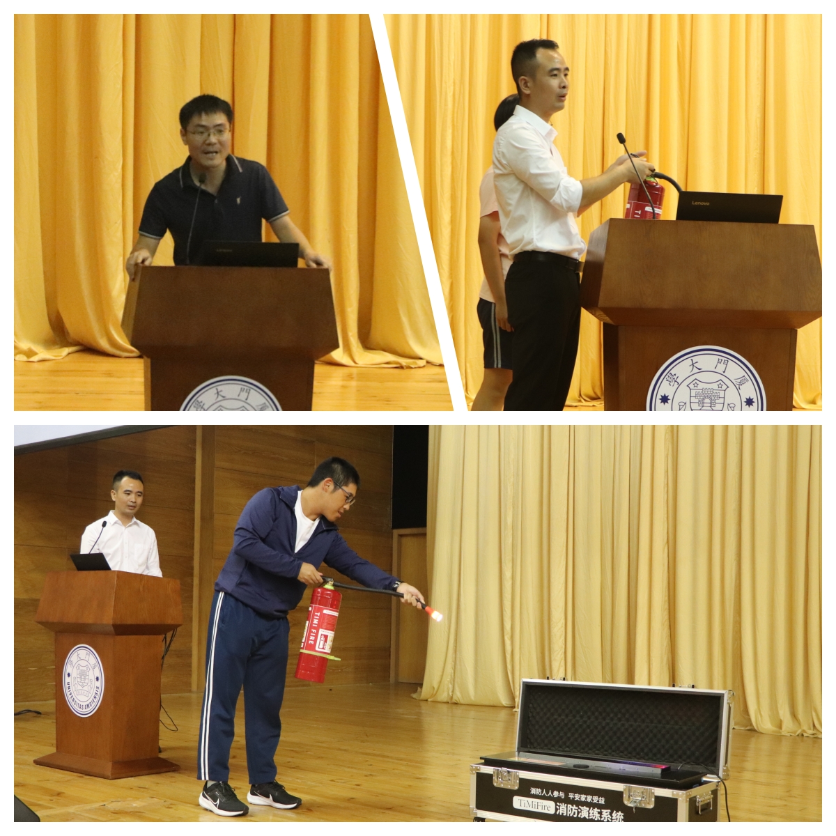 两学院高度重视实验室安全教育,本着实验室安全“从入学抓起”的原则,围绕“学安全知识,树安全意识,懂安全技能,做安全实验”主题,化学化工学院秘书罗平老师向新生同学们详细介绍了两学实验室的基本概况、实验室相关安全守则,以及实验室突发事件的应急防护措施等内容。他结合一些实验室安全事故典型案例,让同学们认识到在开展实验教育前学习安全知识、筑牢安全意识、掌握安全技能的重要性。工作人员还将仿真灭火设备搬上讲堂,通过现场教学,教同学们如何正确使用灭火器。