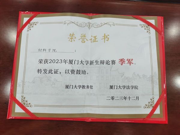 经过一月余的激烈角逐厦门大学2023年新生辩论赛终于落下帷幕材料学院代表队一路披荆斩棘,荣获大赛季军。