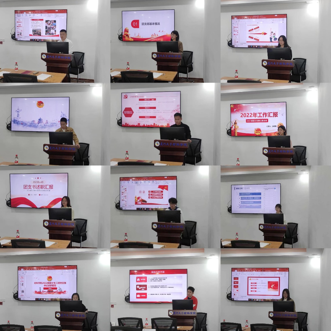为了深入学习贯彻党的二十大精神,认真落实校团委《关于开展2022年度基层团组织书记述职评议考核工作的通知》精神,扎实推进基层团的组织建设,提升我院共青团工作水平,2023年3月15日和16日,材料学院2022年度学生团支部书记述职评议大会召开,本次述职大会共分为本科生及研究生两个专场。学院党委副书记黄兆君、团委书记石林伟、团委副书记丁渡、辅导员林锦昊、本研团总支书记以及各基层团支部书记参加本次活动。