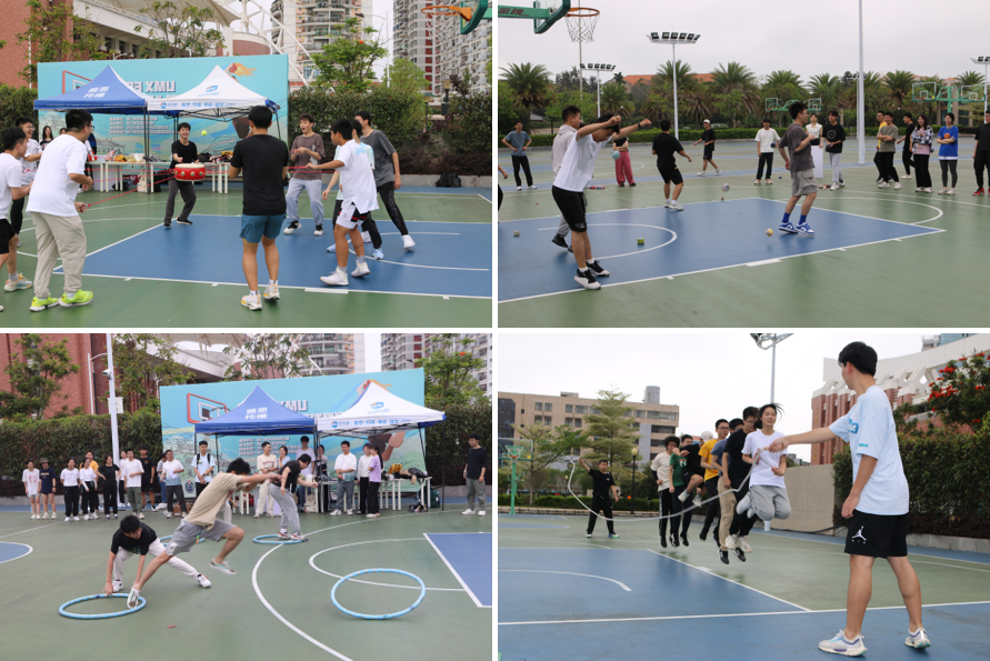 开幕式后,趣味运动会火热展开,每一个比赛项目既是智慧和体力的角逐,更是团结协作的完美比拼,虽以趣味为主,但每个项目都特别考验团队协作精神。活动设置了 “众星捧月”,“沙包躲避”,“障碍接力”,“跳大绳”等趣味项目。这边的“众星捧月”十人正凝神屏息,死死盯着鼓面上的小球,另一边的“沙包躲避”同学正灵活地闪躲着空中飞过来的沙包;跑道上有同学们的障碍接力,远处还有“跳大绳”同学的整齐的口号声。
