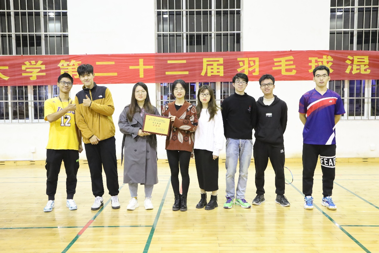 12月19日,厦门大学思明校区第二十二届羽毛球混合团体赛决赛在思明校区风雨球馆圆满落幕。经过两周的比赛,材料学院研究生羽毛球代表队最终获得第五名的成绩。本次羽毛球队由包冰涛担任队长,队员由郭传銮、陈鑫、孙祥、卓淏鋆、欧阳嘉露、谢祎馨、邓雅君组成。