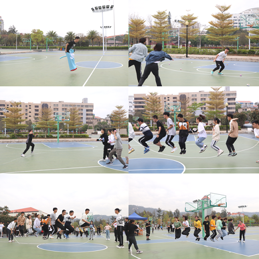 在场地的另一边,参加“袋鼠跳”的同学套上了“袋鼠袋”,大家欢呼雀跃,兴致勃勃,憨态可掬的“袋鼠们”从起点开始不断弹跳向终点成为了操场上靓丽的风景线。童年回忆项目“沙包躲避”更是吸引了众多同学参与。投掷的同学瞄准时机,防守的同学灵活躲避,紧张激烈的游戏让场上欢呼声、遗憾声此起彼伏。现场热烈的气氛更是引得在场老师们纷纷加入,许多同学在赛后还回味无穷,召集同伴继续游戏。“跳大绳”项目当然也是必不可少的。两侧的同学摇起大绳,中间的同学看好时机跳起。当大家整齐跳动时,一条大绳在同学们的完美协作面前变得不再难以跨越。