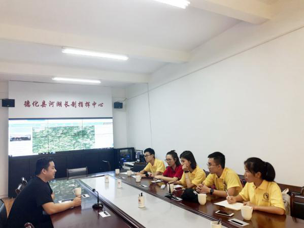 2018年07月16日,实践队前往河长制办公室进行采访。通过河长办秘书部的介绍,成员们详细了解了德化河长制近年来的推行成果与现况。据了解,福建省作为全国首先推广河长制的八大省之一,实际上从2014年就开始实行了河长制,其中德化是河长制实行的典型示范,水源治理位于泉州市第一。德化对水质的治理着重从污染源做起,污染源主要是餐饮企业、生活污水、工业废水(陶瓷厂)。政府在加大惩罚力度的同时,耐心引导企业与百姓保护母亲河,增强大众环保意识。至今,德化的水质已得到明显改善。当然,德化目前还有很多需要改进的地方,河长办目前人手不足,工作人员压力大,某些方案的落实较为困难。此外,群众环保意识有待增强,宣传力度有待加大。为增强群众的环保意识,河长办计划将NFC芯片应用于河长制的宣传。